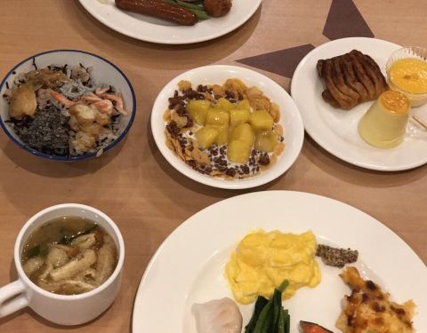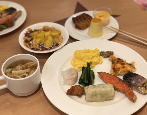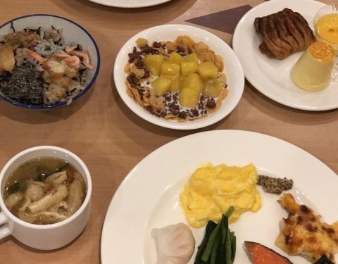 早餐种类并不是特别多,但是西式和日式都有,还有中式的虾饺和小笼包哦,简直让人意外