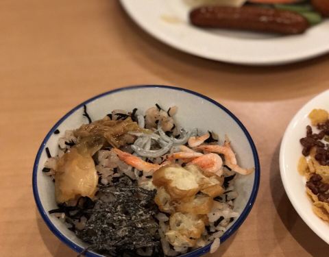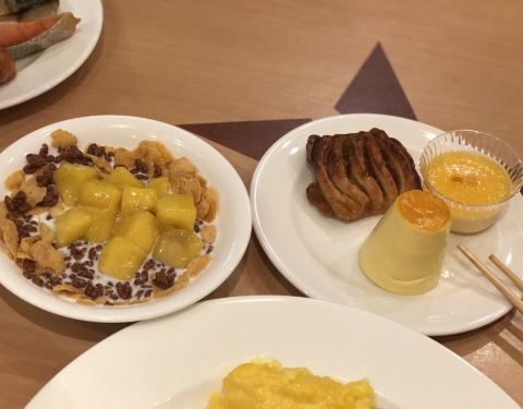原本想写这家酒店的自助餐厅的,可是没有收录,我也不好添加了,就写在这儿吧。 这个好像是酒店的大堂吧。 酒店的客人可以免费在下午茶时间到这边来喝茶和咖啡,但好像是没有提供点心的。 保鲜柜里的甜点需要额外付款,不过看起来颜值比较低,没多大吸引力。 在这儿入住,建议预订含早餐的房型,因为性价比是真的还不错。 早餐种类并不是特别多,但是西式和日式都有,还有中式的虾饺和小笼包哦,简直让人意外。 各种食物看起来都还行,推荐日式料理。味增汤很浓料很足,炒的滑蛋特别嫩,用来夹吐司肯定特别棒。 还有一些一些烟熏的海鲜,各种水果蔬菜沙拉,还有好几款麦片,饮品也还比较丰富。 总的来说,酒店的住宿性价比高,自助早餐也是很划算。 在轻井泽餐厅不多,一大早的出去吃饭也就只能选择便利店了,还稍微有一点点距离呢,早餐在酒店解决是不错的选择。