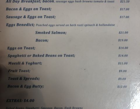 在Omarama过夜,青年旅社不提供早餐,于是就到这里吃早点。其实这里是小镇的两条主马路的交叉路口,有两个为加油站,几个饭店,一家超市。这家饭店只供应早餐和午餐。品种不多,作为早餐价格也不算便宜。两根大香肠真的很大,煎蛋是双面的,面包片烤的也很香,意式咖啡味道正宗。环境好,服务好,推荐大家去吃早餐。