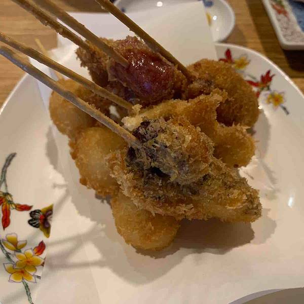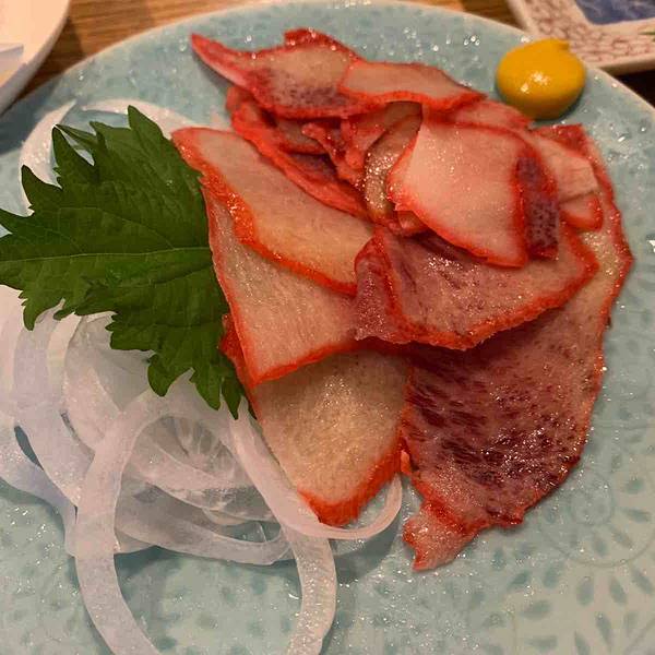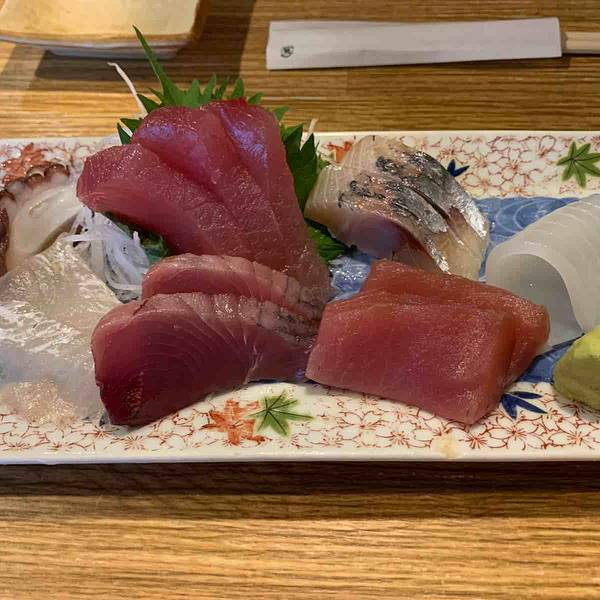 这家餐厅位于纪伊天满站附近600米处的小巷子里,如果不是闻到厨房传来的阵阵香气,很难发现隐藏在普通民居里的居酒屋。 环境用餐环境非常本土气息,进门是吧台和小小的桌台,再往里走是榻榻米。吧台后面就是操作间,柜台上摆着时令的鱼和贝类,柜台上有各种酒。 服务服务员小姐姐很热情,会说英语。因为只有日文菜单,小姐姐还给我们翻译,很贴心。上菜之后每一种料理都给我们介绍,真的很棒。 刺身拼盘非常新鲜,海滨小镇总是能吃到地道的海鲜。价格也非常亲民,2人分享一人份也足够了,1200日元搞定。拼盘里有两种金枪鱼、比目鱼、鱿鱼、章鱼和其他叫不出名字的鱼肉刺身,能一次性体验好几种,非常推荐。 炸鸡是现做的,皮很脆,肉很嫩,还配沙拉。 炸串拼盘也是现做的,有猪肉丸、香肠、鹌鹑蛋等等,蘸黄芥末酱是不错的选择。 熏鲸鱼肉味道比较接近无骨猪耳朵,没有怪味,但也不好吃,搞不懂日本人为何如此热衷。 蔬菜天妇罗也非常推荐,茄子、青椒、秋葵、洋葱、蘑菇,还有一种不知名的花,炸得恰到好处。 饮料推荐巨峰葡萄酒,加了冰块,喝起来甜甜的,酒精含量也不高。 如果你有机会来那智地区,就一定要来尝试一下这家本土居酒屋。