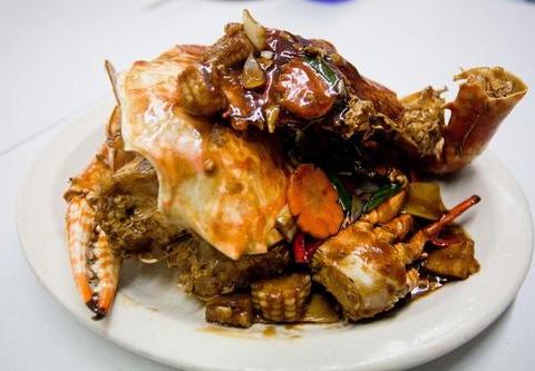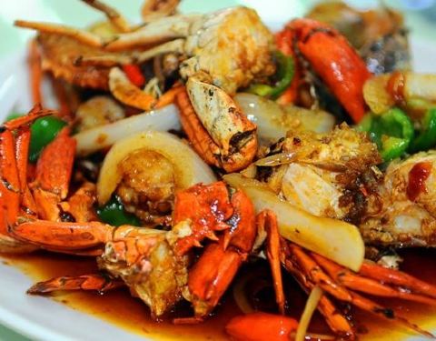各种海鲜琳琅满目,香辣蟹十分麻辣鲜香。