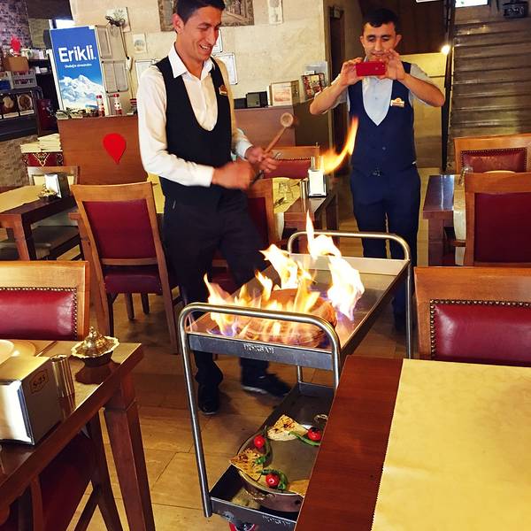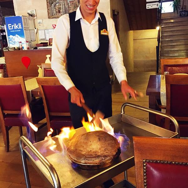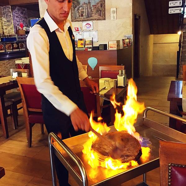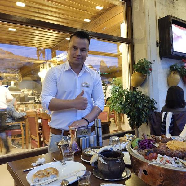 清晨下了夜巴再次回到格雷梅的第一顿饭就是打卡了这家餐厅,是一群在土耳其一起玩的小伙伴推荐的 【口味】总体来说味道还是不错的,烤肉恰到好处,料理也非常有特色 【环境】环境倒是一流,而且中国客人会送土豆丝哦 【服务】服务棒棒哒,土耳其人真的非常热情,送了我们不少小吃,可惜没有拍照留影