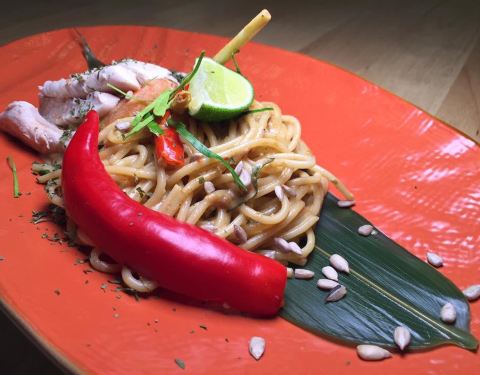 ...水果饮料,绿茶咖啡和冰沙都可以享受到,美食方面如三文鱼蔬菜沙拉,海鲜套餐,马来式炒面都做的不错