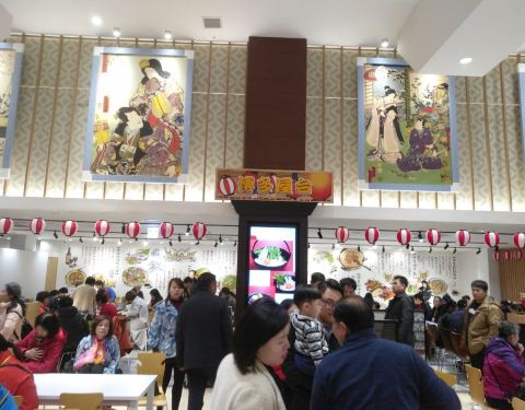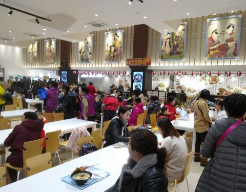 ...是不少,有拉面,烤串,寿司,盖饭等,顾客就餐在大厅的公共餐桌,旅游旺季就餐的游客很多,非常热闹