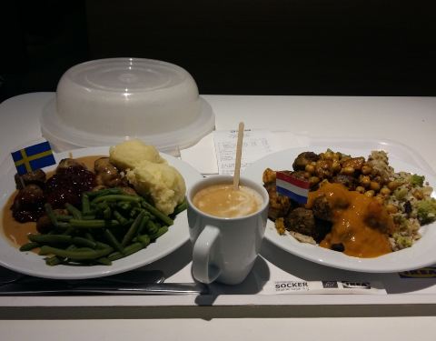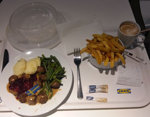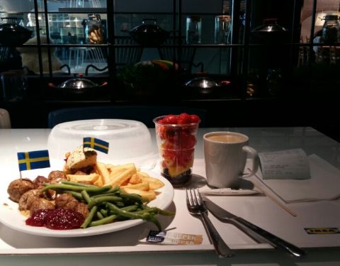 今晚我在宜家餐廳吃晚餐。