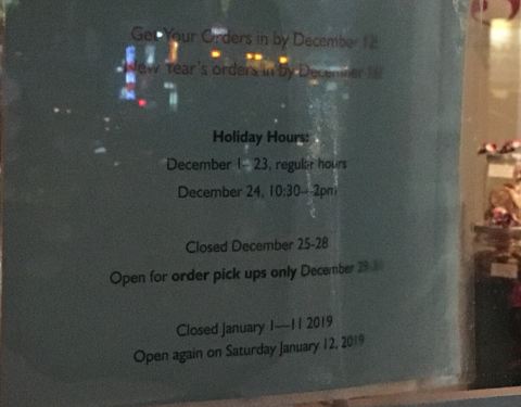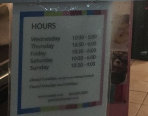 Sweet E的营业时间不多:整个周一、周二、所有节假日都不开放,即使是周日也在下午4:00就关了。所以,没有问到蛋糕的香味,只吃了个闭门羹。