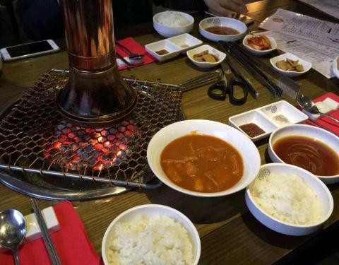 这是一家韩国BBQ自助烧烤,味道过得去,牛肉和猪肉都可以随便吃,大酱汤也有,最后还要了两份白米饭,感觉太棒了,比意大利面好吃多了。