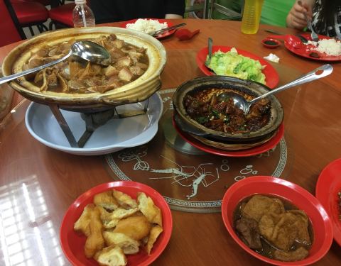叶氏肉骨茶来自巴生,叶全是其中一位兄弟开办的肉骨茶在蒲种城受当地食客爱戴,主要以浓郁的药材汤汁熬制的肉骨茶很美味和特色,砂锅混杂了各种猪头如猪蹄,猪肚,排骨,瘦肉都肉质感觉特别好,干辣的肉骨茶,以猪蹄为我最喜欢,可以啃骨享受辣椒味。