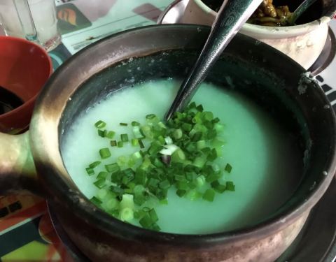 ...莹剔透的白粥上面点缀的绿油油的鲜嫩小葱甚是诱人,砂锅田鸡也相当滑嫩好滋味,非常接地气的一家餐厅