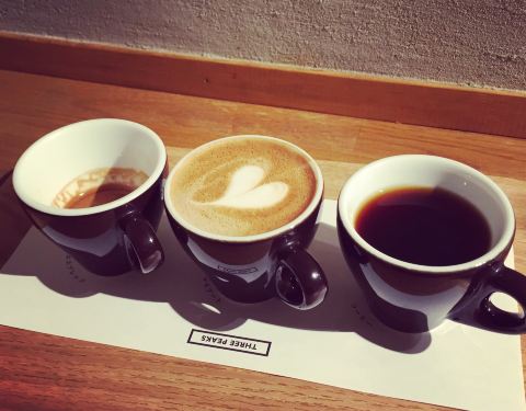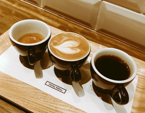 コーヒー3パターンの飲み比べが良かった。タマゴサンドは薄味。