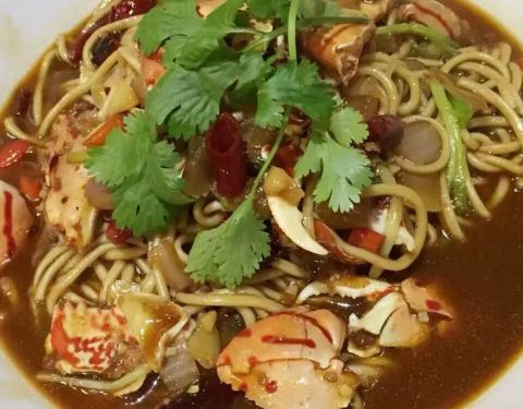 一个人的晚餐。本来打算吃蟹钳面的,可惜是二人份