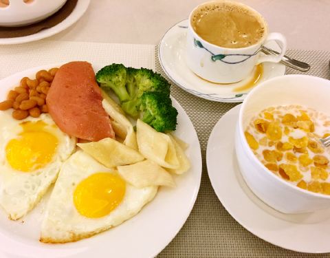 这家酒店早餐倒是出乎意料得品种齐全,酸奶就有四种选择还能搭配各种干果坚果,中式的品种也不少,粥油条等都有,面条也有几个品种可选,水果推荐凤梨,很甜,水分多,其他没撒出挑的菜,总得来说还可以。