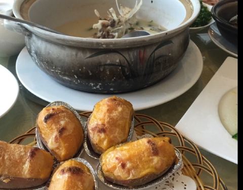 一开始还是想随便找家吃的,记过想想要对自己好点,结果就过来了,发现是挺好吃的。山坑螺焗鸡,鸡肉鲜嫩紧实,山坑螺与鸡同焗,两者鲜味带出这味好吃的特色菜。上汤紫贝菜,我觉得也挺好吃的,清清淡淡。反而我觉得那个土鸡蛋一般般喔,值得一试。芝士焗番薯,不会腻甜腻甜,可以当主食。