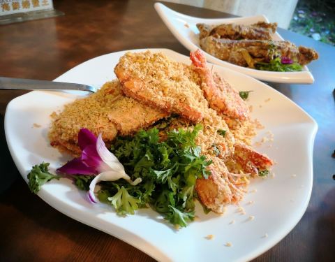 这家店的份量很大,我们点了招牌的螃蟹米粉汤,味道还不错,但是感觉黑胡椒的做法应该更好。咸蛋黄排骨,实在是太好吃了,必须要点。