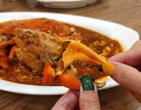 当地人力荐的海鲜餐厅,辣椒蟹的汤汁是一绝