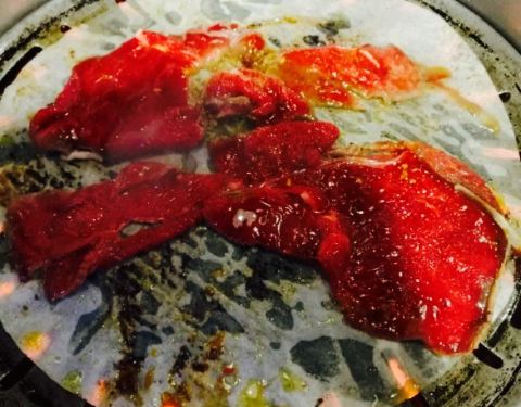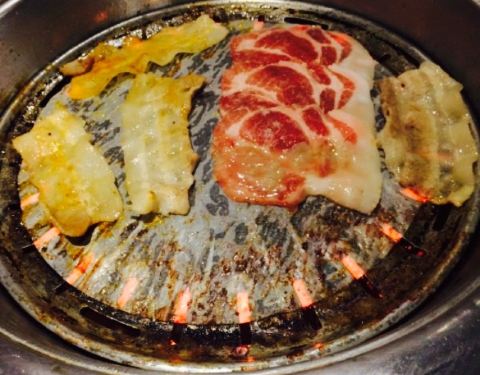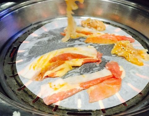 - 烤肉是自助形式,在菜单上选好后,菜再端上来,一进门就有寿司,沙拉之类的自助区