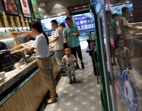 这家烤肉店给人的样子非常拥挤,如若走廊坐人,服务员就不好走了。饮品都是机出,这点不欢喜
