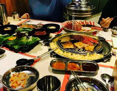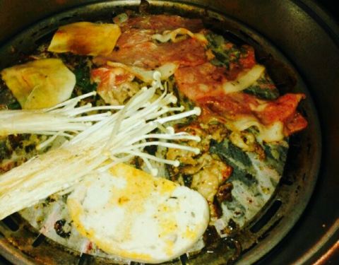 朋友推介,环境还行,地方不大,主打烤肉,其他能吃的东西相当有限,熟菜里花生和猪耳朵不错。烤肉据说比以前切的薄了点,鸡胸,牛羊肉都还可以,qq肠大家都爱吃。素菜里金针菇杏鲍菇口感都好,韭菜不错,总体来说还算满意,价钱再便宜点,可口的熟菜多点的话就更好了。