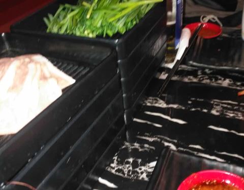 - 还会帮忙烤肉,收拾空盘子也很快。肉的品质是不错,酱料的种类好少,不是我的菜