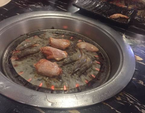 一直看到朋友圈在刷,今天第一次去。服务真的好,会和你详细说下哪些是店里的风味,还有酱料。还会帮忙烤肉,收拾空盘子也很快。第一次点了三盘虾,一盘四个,虾的总体水平还行。菜的品种不多,以肉为主,就觉得嘴巴里面一直在塞肉,后来第二轮点的虾也不上了,也不想问了,因为看评价,好像有好多人都是第二轮点虾,只是没上桌的。肉的品质是不错,酱料的种类好少,不是我的菜。觉得需要添加烤的东西,还有酱料能不能多弄点其他口味。