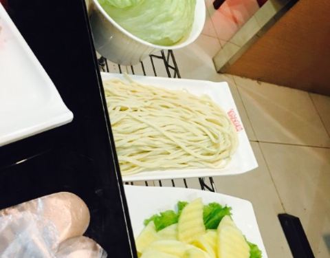 办事经过这儿,服务生态度非常好呢,很有耐心也很亲切,虾很大一只,没有虾线意味着处理的比较卫生,分量很足,两个人吃的超级饱,面条很有嚼劲,居然被我们吃光了,洋芋也很入味,西瓜的话有点败笔,觉得是一个死瓜,没有太多水分,味道有点糠,饮料是免费的,酸梅汤还不错,麻酱真的很咸π_π咸哭了都要。