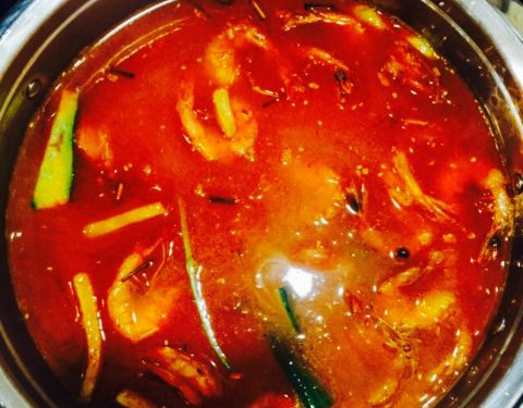 可能中午人少的原因,菜上的非常快,团的四人餐,和六人餐的差别就是少了几样涮菜,又单独要了一斤虾,说实在的南美白对虾味道真的不错,肉质细嫩还带一点点甜味,吃起来真的让人回味,可是就是量有些少,四个人还有三位女士,如果不单要一斤虾的话,还真不一定够吃。
