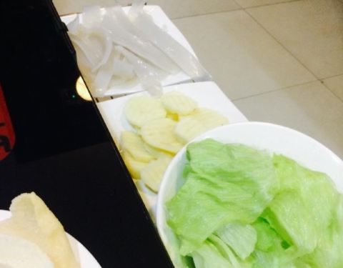 菜上的非常快,团的四人餐,和六人餐的差别就是少了几样涮菜,又单独要了一斤虾,说实在的南美白对虾...