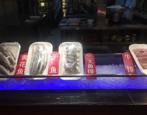 香格里拉酒店有点老了,但是自助餐确实不错,价格适中,但是东西品种还是很多的,海鲜,冷菜,热菜,还有小火锅,牛排,羊排,甚至小龙虾,啤酒,饮料,冰淇淋……能选的真不少,可以尝试!
