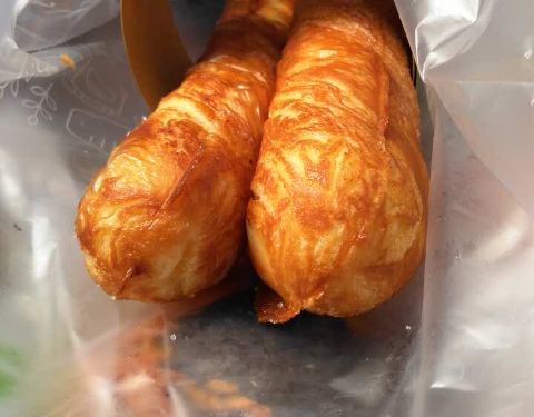 走到门口闻到香味去买了一个,还是热的,挺好吃的,特别是脆的地方