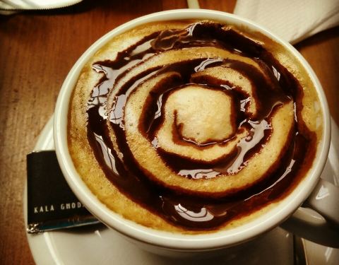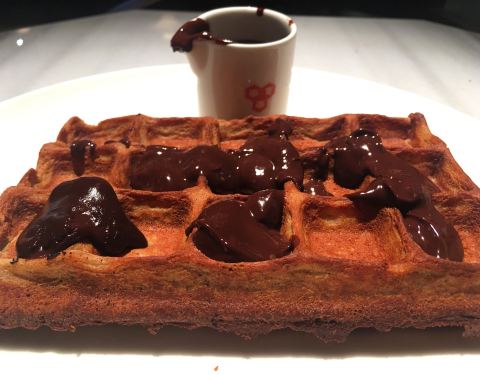 Order the waffle with Dark Chocolate sauce and add extra ice cream which is perfect combo. Mochachino has dark chocolate sauce in it