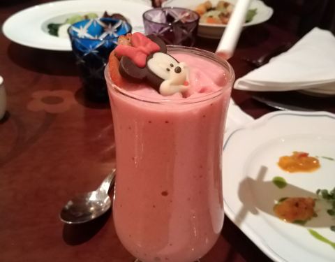 上海迪斯尼乐园的皇家宴会厅位于白雪公主城堡中,是一处十分高级的餐厅,有380元的套餐,一道开胃菜,一道主食,一份甜品和饮料,味道很不错,而且量也很大。另外加200元会有最靠近城堡的位置可以看烟火表演,真的挺超值的。