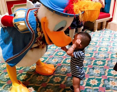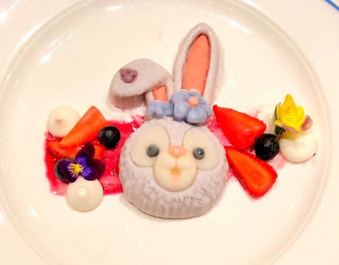 - 吃饭途中会有迪士尼人物们来合影,是一个很不错的选择。摆盘很精致,有各种迪士尼元素,但甜品有点腻
