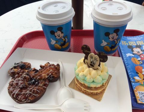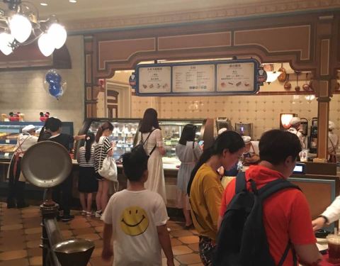园区内米奇大街上一家甜品下午茶店,毋庸置疑店内的环境也是主打比较梦幻的场景。烘培的香味充满店里,不过座位只有室外才有。甜品的形状也是各种迪士尼卡通人物,至于口味真的还是可以的。兔子面包挺松软,里面的香肠烤得也不错。饮品的话,有甜得发腻,我个人比较喜欢里面的茶类饮品。