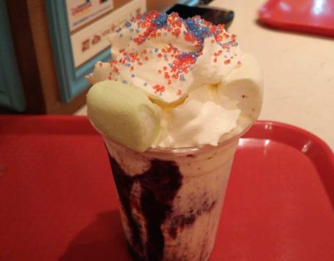 青柠口味奶昔,迪斯尼夏日新品。米奇烘焙里性价比较高的一款饮品,原料较多,青柠在夏天饮用超爽口。