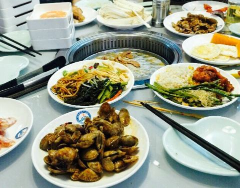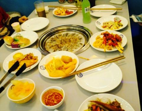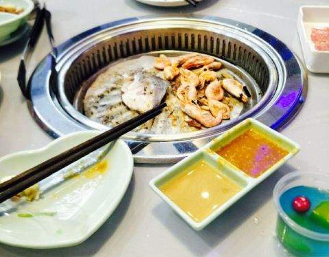 所有自助圣鲸都主打蓝色色调,给人一种超过瘾的吃饭体验。他家餐厅以烤肉为主,各类肉码在一个个盘子里,干净很整洁。除了各类烤肉,还有水果披萨蛋糕饮料海鲜虾炒菜炖肉寿司等等,品种超多,每次去都根本吃不过来服务员给换纸也换的勤,态度好,看见龙虾螃蟹啥的很主动的就过来帮忙减壳。唯一不好的就是每种菜口味做的不是很到位,没有那么香,让人回味无穷,希望改进。
