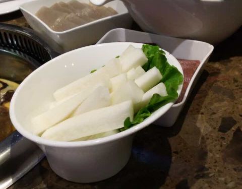 点了龙利鱼48 澳洲肥牛29 冻豆腐8 宽粉6 蔬菜拼盘29 喜欢吃这个鱼 真的没有刺 很鲜哦 冻豆腐我特别好吃 很入味 宽粉也是哦 带爸妈来吃的 感觉还有点辣 还有免费的水果 西瓜 圣女果 挺好的
