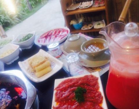 环境十分的巴适,很有田园风情的一家火锅店,装潢很别致,院内随处都有小桥流水,非常的天然。有房子和帘子搭建的小厅,也有室外露天的台子,竹子编制的椅子很有年代感。菜品有单独摆放的区域,免费自助区有水果...