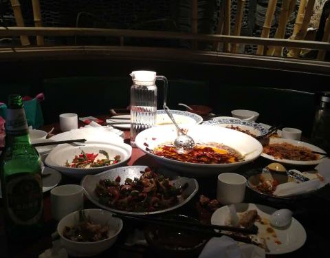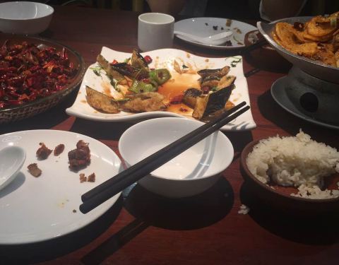 毛血旺和水煮鱼还不错,其他的菜一般,毛血旺口味略辣,米饭好吃,其他的一般,人特别多