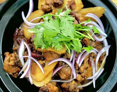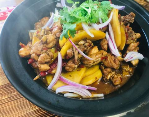 - ...饭啊,别说他们家的鸡还真的是很有特色的呢,感觉鸡的腌制特别的独特非常的下饭味道很不错的啊很好吃