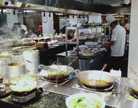 临湖而建的杭味餐厅,明档操作一目了然。