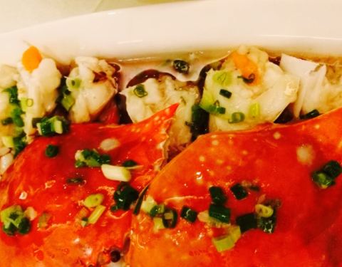 - ...点了葱油蟹,鱼,螺拼,比较有舟山特色的几个菜,也点了几个牛肉什么的,配搭的很好,吃的很饱很愉快