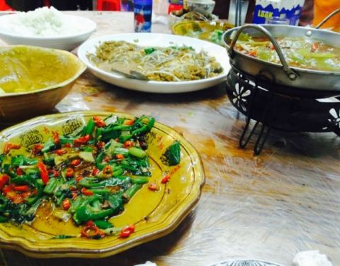 用网友攻略搜索到的,跟着导航走,导航导到巷口就没了,电话询问店家才知道在胡同里头,一直走了大概20米转角处就看到亮堂堂的招牌,空间不大就摆了几张桌子,不过都坐满了,还好楼上有位,上菜好快,一心品尝味道去了,没来得及拍前照,留下的只是一桌残局,油浸鱼鲜嫩咸辣酸甜味,让我想起小时候吃的酸萝卜丁。田螺必须赞一个,我这碗饭还是用汤下的,越吃越开胃,牛蛙料足,烧着火边吃 。好辣 。最喜欢吃里边的腐竹和莴笋。环境就是普通家常馆子店。垫着桌布卫生还是不错的。