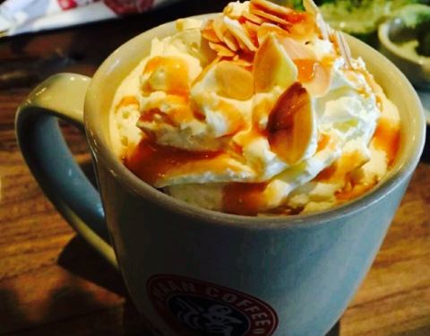 【地理位置】在百盛二楼就能进去,可是没注意,从百盛外面看以为是一楼而且很明确,所以特地绕到外面,结果还是上了二楼。【环境】小资高***的赶脚,可是说起来,灯饰很漂亮,夜幕十分,很温馨。而且干净整洁。【服务】服务都很好,有礼貌。【口味】华夫饼很入味,松软热乎乎的,配上奶油,很好吃,而且我觉得漫咖啡的奶油是动物奶油,因为放在华夫饼上一会就融化了。冰淇淋球味道不错,可是不知道是怎么冻的,中间都是冰碴,不够绵密。拿铁还是什么咖啡不错,本人觉得挺大杯的,反正我是喝不了,略苦,要多放糖。除了这些还有免费的柠檬水,冰的和温的,还有烤面包条,挺好吃的,很酥。美中不足就是杯子有些旧,有裂痕。总体来说很适合读读书,休息闲聊。环境好,人不多,舒服。