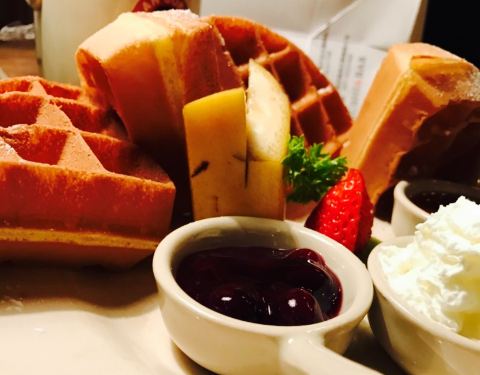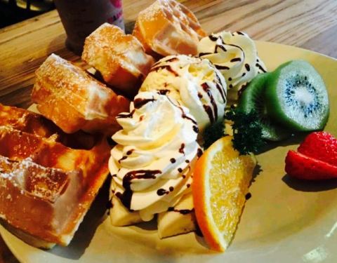 - ...松软热乎乎的,配上奶油,很好吃,而且我觉得漫咖啡的奶油是动物奶油,因为放在华夫饼上一会就融化了