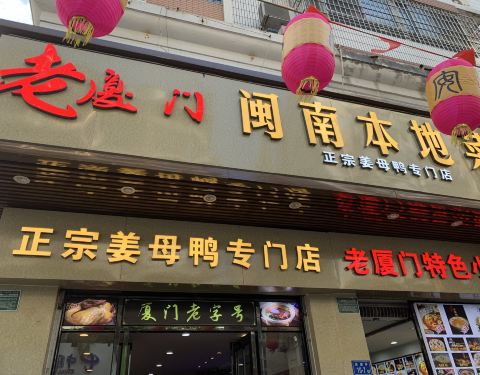 老厦门闽南本地菜,位于厦大西村附近靠近演武小学,招牌还是蛮醒目挺好找的,饭点过去的时候店里人挺多的。上菜速度挺快的,菜品整体上也算比较地道。水煮三鲜里头有虾花蛤鱿鱼等等。豆腐用的是黑豆腐,口感比较...老厦门闽南本地菜,位于厦大西村附近靠近演武小学,招牌还是蛮醒目挺好找的,饭点过去的时候店里人挺多的。上菜速度挺快的,菜品整体上也算比较地道。水煮三鲜里头有虾花蛤鱿鱼等等。豆腐用的是黑豆腐,口感比较软嫩更香更好吃。姜母鸭是半只的分量两个人刚刚好。干锅包菜,做的蛮不错的很入味。菌菇汤除了有菌菇里面还加肉羹口感还可以。