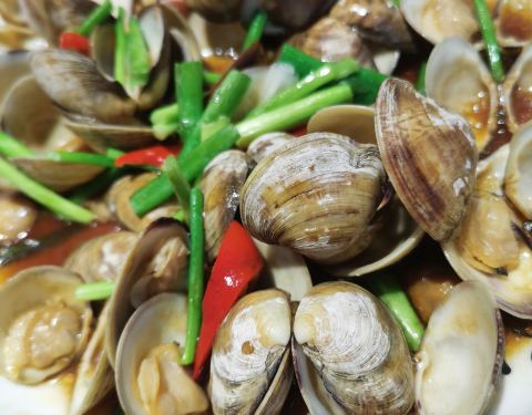 - 蔬菜碧绿,而且炒得很香,味道很好,连蒜蓉都吃光啦。 鲍鱼和花甲都很新鲜,味道也好