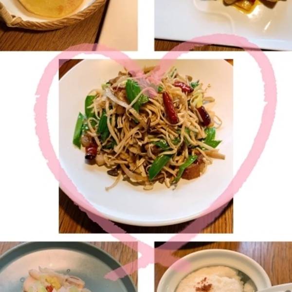 点了招牌宫爆虾和藤椒鸡丝,还有炒豌豆尖。 宫保茄香虾球茄子很脆,上菜会有倒计时,3分 钟内最好吃哈哈哈,然后就猛吃。 手丝藤椒鸡越吃越香,狠下饭