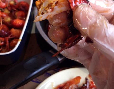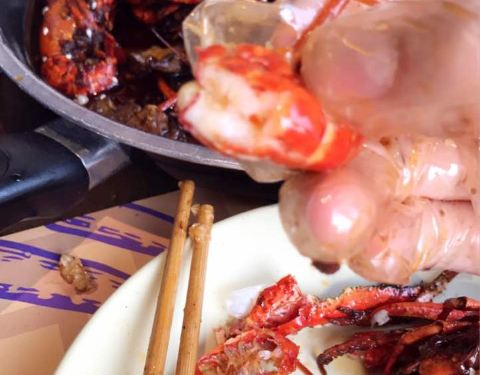 - 虾处理的很干净,个头也很大,桌面还有丢垃圾的孔,非常周到的设计,让食客们吃起来很轻松