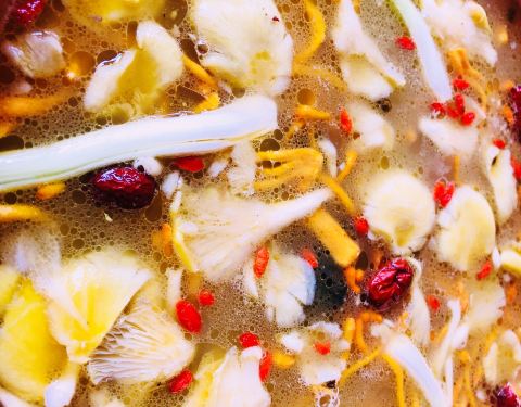 ...配菜,小小的菌菇也超级好吃,锅里的肉吃的差不多了他就会给你加汤,然后就可以加一些自己点的配菜了