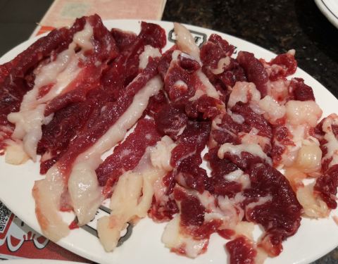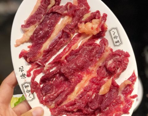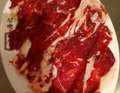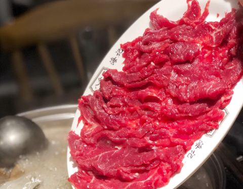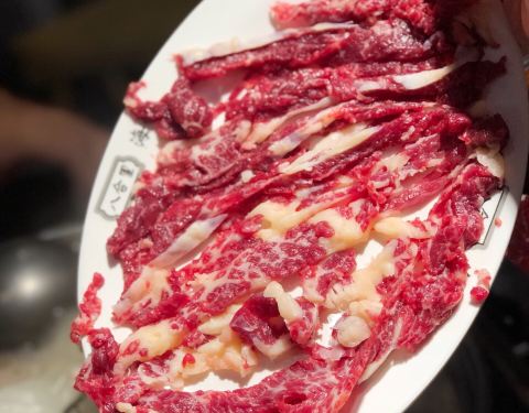 牛肉现切的潮汕火锅店,肉质鲜嫩爽滑。